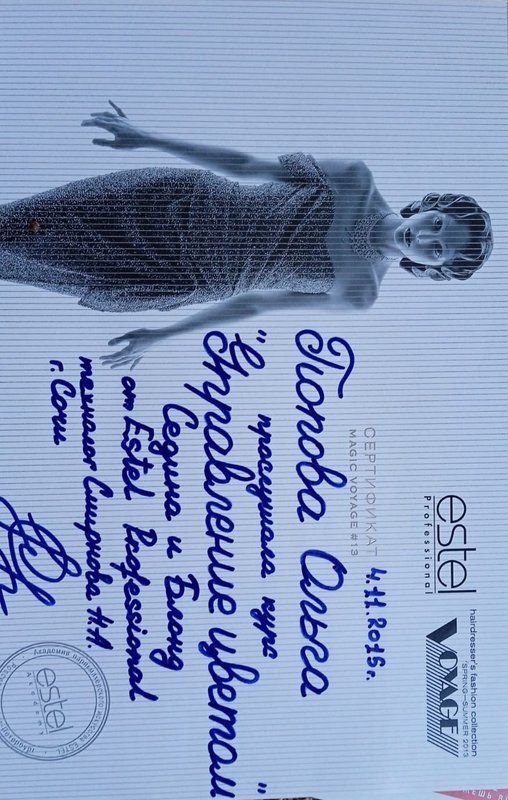 Я живу далеко, но за время пребывания в Сочи дважды была в парикмахерской Стиль. Хорошая и приветливая мастер Ольга подстригла, подобрала хороший цвет краски и сделала мне мелирование, получилось очень хорошо! Мне понравилось, что она учла все мои пожелания.