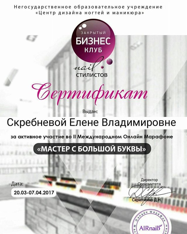 Очень долгое время я не могла найти себе нормального, адекватного мастера, который стерилизует инструменты , и соблюдает все нормы в плане обработке инструментов. А это очень важно!!! И наконец я ЕЕ нашла и это Лена! Уже долгие 5 лет хожу только к этому мастеру и каждый раз удивляюсь и восхищаюсь ее умением. Работы хорошие, цены адекватные, персонал дружелюбный и хорош в своем мастерстве.