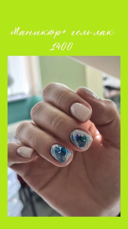 Очень быстрый маникюр с покрытием.За час маникюр и покрытие с дизайном и негодного пореза. Я довольнаочень.