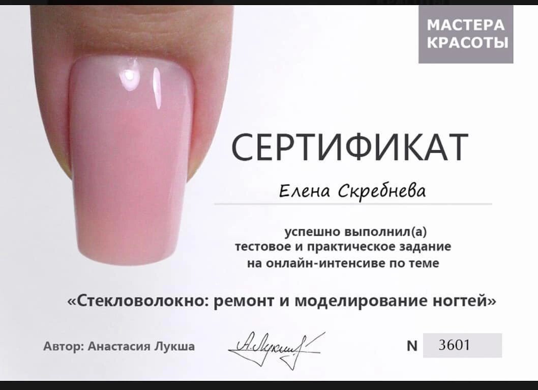 Алёна, классный специалист своего дела, работает с удовольствием и качество работ отличное! Осталась очень довольна маникюром: без порезов, без заусенчиков. Покрытие с выравниванием в цвет как и хотела. Я нашла своего мастера