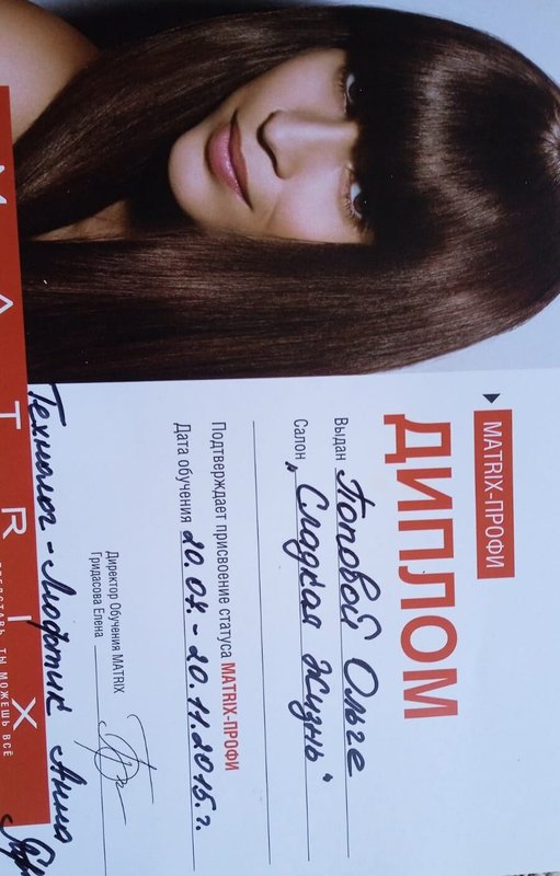 дела.У меня сложное окрашивание и она его выполняет всегда на отлично, так же и стрижку. Мой муж тоже приезжает на стрижку к этому мастеру. Очень классно когда есть свой мастер который всегда выполнит свою работу на отлично.